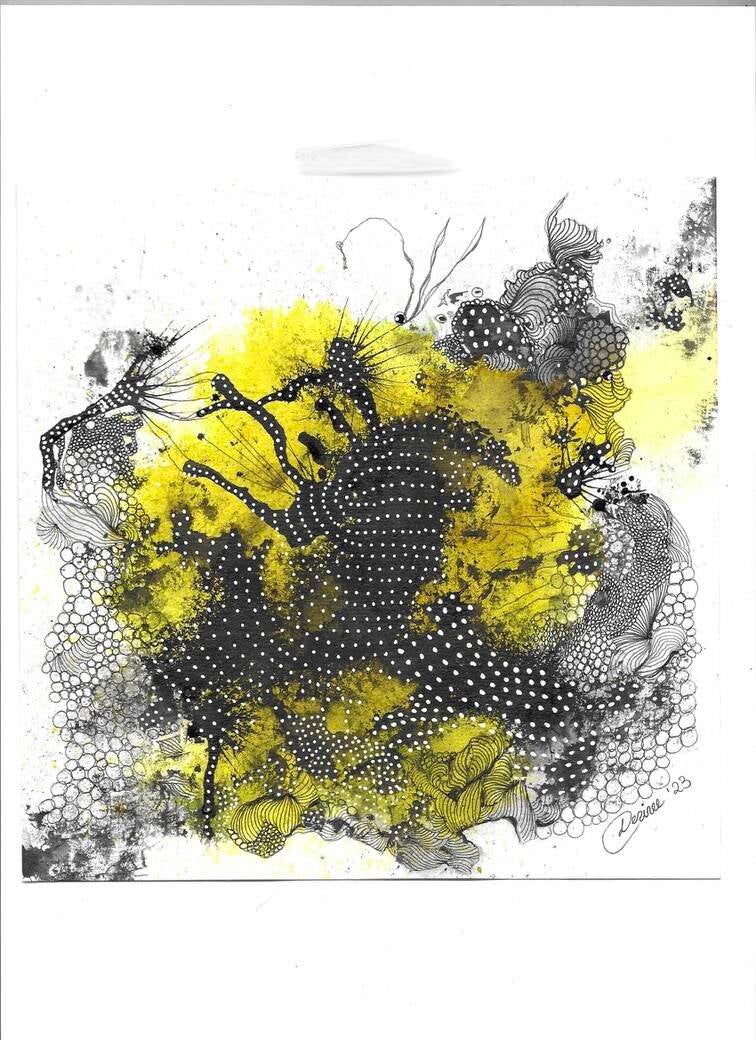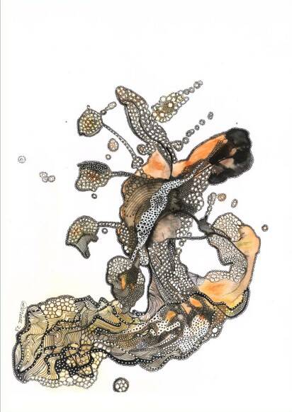 Now, for the past 4 years, I mainly use ink, watercolours, acrylic, pens, collage on canvas or paper.